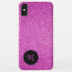 Um design minimalista cintilante elegante na popular combinação de cor rosa quente e preto com um simples monograma de rico, de uma letra para lhe dar um toque personalizado. Apenas mude a carta para a sua. #personalizado #classe #brilho #brilho #monograma #hotpink #fonecase