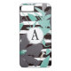 Uma capa de telefone monificada com cinza e padrão floral da horta e listras pretas. Uma capa de telefone na moda que você pode personalizar! Este design tem listras brancas e pretas em relevo, impressas com um belo padrão floral. Personalize o caso com seu nome ou nome inicial. Design por JennsEmporium.