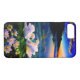 Bonitos cisnes no pôr do sol decoram esta capa de telefone