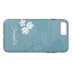 Esta caixa na moda, personalizada para o iPhone 7 positivo é grande proteção e decoração para seu iPhone novo 7 positivo. O design azul bonito com flores brancas é travamento do chique, o elegante, e do olho! O texto é branco. Fácil personalizar ou suprimir do texto do exemplo. Todos os direitos reservados © Alan 2016 & Marcia Socolik.