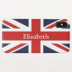 Crie o seu próprio Unifone personalizado, estilo bandeira do Reino Unido, design. As listras são vermelhas e brancas. O fundo é escuro ou azul-da-meia-noite, mas você pode mudar isso. Você também pode alterar o estilo, o tamanho e a cor da fonte do design de texto personalizado.
