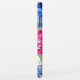 Lindas flores rosa-quente e azuis com padrão de folhas