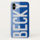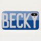 Faça sua escolha de nome aparecer corajosamente em uma capa de telefone de dois tons. Exemplo mostra o nome Becky. Personalize com sua escolha de nome curto.