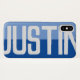 Faça sua escolha de nome aparecer corajosamente em uma capa de telefone de dois tons. Exemplo mostra o nome Justin. Personalize com sua escolha de nome curto.