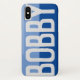 Faça sua escolha de nome aparecer corajosamente em uma capa de telefone de dois tons. Exemplo mostra o nome Bobby. Personalize com sua escolha de nome curto.