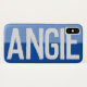 Faça sua escolha de nome aparecer corajosamente em uma capa de telefone de dois tons. Exemplo mostra o nome Angie. Personalize com sua escolha de nome curto.