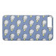 Capa de telefone móvel de ovinicultores. Padrão de design de ovelha mostrando um bando de ovelhas. Fundo azul. Agricultura, ou tema agrícola.