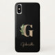 A capa de telefone preta elegante apresenta um monograma botânico dourado no centro.