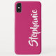 Este moderno, moderno e ousado caso-mate minimalista para o iPhone XS, XS Max, XR é um pavão rosa forte com um nome de tipografia de script branco gigante. Simples e elegante! É fácil escolher uma cor diferente. Também é fácil personalizar o nome do exemplo. Selecione Casemate Mal There Viagem ao trabalho ou Tough Series. Todos os direitos reservados © 2018 Alan & Marcia Socolik.