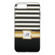 O caso feito sob encomenda do smartphone do monograma com ouro luxuoso os elementos denominados do design impressos no cobrir e deixa-o levar seu telemóvel no estilo que inclui um branco e um teste padrão das listras do ouro.