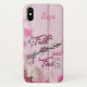 Personalize seu telefone celular com esta capas de iphone espiritual "Um tipo". Com palavras inspiradoras... "Fé sobre medo"... e uma bela seta aninhada entre Bonito flores brancas e rosa com penas roxas. Design de Arte Gráfica Original do Artista Kerry Miller.