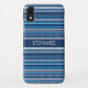 Esta capa de telefone de Natal apresenta um design de faixa azul e branca, estilo suéter. Personalize-o com um nome.