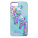 Um girafa da mãe e do bebê nas máscaras do aqua, do roxo e do amarelo é caracterizado neste cobrir personalizable do telefone. Adicione um nome em sua escolha do estilo e da cor de pia batismal ou deixe-o liso.
