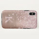 Elegante, Glam, rosa de diamante de ouro, capas de iphone de confete de Girly Shiny. Apresenta um fundo de metal esfregado em rosa dourado falso, pontilhado com ouro rosa rosa e confete de diamantes brancos. Personalize com seu nome e monograma inicial. Por favor, note: esta design é um efeito fotográfico impresso sem brilho e joia reais.
