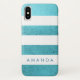 Procurando um caso para mostrar seu novo iPhone X? Esta capa de telefone brilhante apresenta um padrão de faixa no efeito AZUL METALLIC GLITTER e listras brancas. Use o campo personalização opcional para adicionar um nome ou texto de sua escolha. NOTA: a brilho é uma imagem impressa.