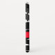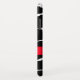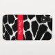Uma única impressão em preto-e-branco, ao estilo zebra, em preto-e-branco, com uma fita vermelha brilhante para o caso das raparigas. Personalize este item com o seu nome. Neste exemplo, lê-se atualmente Tina May. Este padrão original foi projetado por Sarah Trett para www.mylittleeden.com