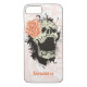 Legal crânio gótico e rosa de cor laranja personalizados iPhone 7, design de vetor legal, apresentando um crânio amassado em apuros com algumas espirais florescentes e elementos de semitom a preto e rosa a laranja. Há um rosa pálido no fundo e algum texto em uma fonte vintage. Totalmente personalizável, você pode alterar texto e fonte.