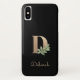 A capa de telefone preta elegante apresenta um monograma botânico dourado no centro.