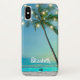 Personalize esta caixa elegante do telemóvel que caracteriza uma praia havaiana tropical e umas palmeiras e umas luzes românticas da corda com seu próprio nome.  Fácil personalizar com seu próprio texto. Este caso do telemóvel é um grande presente para o amante da praia, o amante de Havaí, ou o viajante tropical!  Fotografe e projete o © por TK Goforth e assinado pelo artista, todos os direitos reservados. Outros artigos com este design podem ser encontrados em minha praia tropical e a coleção das luzes da corda e meus loja e você de Zazzle podem igualmente transferir este design a outros produtos clicando a relação abaixo da imagem: