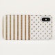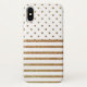 Caso do iPhone X chic feito em branco com um padrão de bolinhas de brilho dourado falso, na parte superior da caixa e listras, na parte inferior da caixa. Personalize para adicionar seu próprio texto.