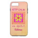 Mostre seu amor por colchar com este colchete colorido e divertido que bloqueia o grande caso do iPhone 6 Plus proclamando "Manter Calmo e Quilt" e personalizado com seu nome. Este design é uma arte original em forma de colcha com um aplicativo coloridoé bloco de retalhamento de flores em um fundo de coral e ombre amarelo. A palavra "quilt" é fácil de mudar para outra palavra de sua escolha. O design de colcha está em cores vibrantes e dinâmicas de laranja, amarelo e fuchsia rosa para uma bela paleta de cores. Totalmente personalizável para personalizar. Quilt art é a arte original da designer de tecidos e colchas Phyllis Dobbs. Esta arte está disponível em outros produtos e em vários planos coloridos e também está disponível em mais produtos Keep Calm com diferentes tipos de arte de colcha. Mais produtos estão disponíveis na loja Phyllis' BusinessWithFlair.