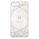 Este na moda apresenta um padrão geométrico moderno, falho, rosa dourado, sobre um fundo de mármore branco. Há também um lugar para personalizar com seu nome e monograma.