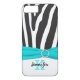 A zebra branca e preta personalizada estabelece um padrão animal praticamente Ali™ iPhone 7 case Vibe com uma fita azul-aqua IMPRESSA e um broche de cristal. Outras cores estão disponíveis a pedido em niteowlstudio@gmail.com.
