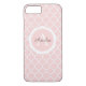 Uma capa de telefone de células personalizada, bonito, rosa e moderna, com um padrão quatrefoil no fundo. Adicione seu monograma e nome. Projetado para você pelo Blackberry Boulevard.