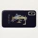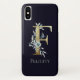 Monograma Dourado Letra F Blue Floral custom name Capa de telefone Para personalizar o nome, vá para Personalizar este modelo" no menu à direita. Se quiser usar apenas monograma, exclua o nome no campo.