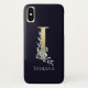Capa Para iPhone, Case-Mate Monograma Dourado - Letra I Marinho Azul Nome Flor