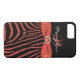Padrão de faixa de zebra, preto e laranja moderno, monogramado, FAUX, padrão de faixa de zebra, iPhone 7, caso raramente há marca com fita IMPRESSA e broche de joia IMPRESSA. para adicionar seu nome, inicial ou outro texto. Se precisar de assistência, envie um email para niteowlstudio@gmail.com.