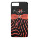 Capa Para iPhone, Case-Mate Monograma Laranja, Brilho Negro Zebra iPhone 7 Cas
