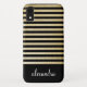 Padrão de Monograma Striped Folha Preta e Ouro Padrão Personalizado de Primeiro Nome Smart Capa de telefone. Entre em contato com o designer para obter itens correspondentes personalizados.