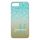 Capa Para iPhone, Case-Mate Monogramme Nome Girly Teal Glitter Ombre Dourado
