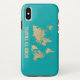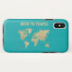 Nascer a viajar caso do iPhone X. Mapa do mundo tirado mão do estilo do vintage