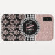 Rosa dourado, brilhante cor-de-rosa e cor damasco preta. Personalize com seu nome e design monograma. Elke Clarke© Girly, elegante, rosa dourado, design cor-de-rosa pincelado com cor damasco floral preta. Rosa dourado, bloco de cor sólida rosa-claro-rosado. Adicione seu nome em uma fonte de script e monograma em uma etiqueta preta decorada com diamantes espumantes. Nota: diamantes e brilho são um efeito fotográfico impresso! As cores da fonte podem ser personalizadas clicando no botão "Personalizar" para as ferramentas de edição. Presente perfeito monograma para uma garota na moda.