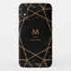 Este caso do na moda caracteriza um teste padrão geométrico do ouro cor-de-rosa moderno do falso, em um fundo de mármore preto do olhar. Há igualmente um ponto a personalizar com seus nome e monograma.