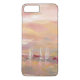 Um design abstrato macio no pêssego macio e nas máscaras cor-de-rosa que descrevem veleiros na costa. Artista: Silvia Vassileva
