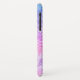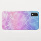 Este bonito estojo celular rosa, roxo, pêssego e iridescente azul tem um padrão de folhas tropicais em uma textura simulada de folhas. Você pode personalizá-lo para adicionar seu nome, iniciais, monograma ou foto.