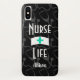 Enfermeira Stethoscope Médica Padrão personalizado Case-Mate iPhone X CaseCute design para enfermeiras com silhueta estetoscópica padronizada sobre fundo e cor personalizável. boné de enfermeira branca com cruz médica turquesa centrado no caso e na "Vida Enfermeira" na tipografia branca.
