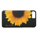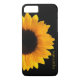 Caso Elegante do iPhone 7 feito em preto com gráficos de um grande girassol amarelo e marrom olhando para o lado esquerdo. Personalize o texto amarelo para você mesmo ou como uma ideia de presente de excelente.