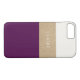 Proteja seu telefone com este gabinete funcional e fabuloso. O roxo de ameixa real compensa a listra de couro de ouro. Adicione seu nome para torná-lo verdadeiramente seu.