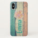 Madeira meteorizada que lembra um passeio de praia em cores de praia de areia, lacre e coral. Perfeito para uma cabana ou casa de praia. Embelado com uma flor de hibisco rosa-coral.
