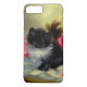 capas de iphone com um gatinho preto e branco! Esse tuxedo fofo se posou entre as flores vermelhas num cobertor azul. Um presente magnífico para amantes de gatos e entusiastas de arte vitorianos!
