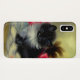 capas de iphone com um gatinho preto e branco! Esse tuxedo fofo se posou entre as flores vermelhas num cobertor azul. Um presente magnífico para amantes de gatos e entusiastas de arte vitorianos!