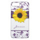 Damasco floral branco e roxo, fita e capas de iphone personalizada de girassol amarelo. Divertido e alegre. Esta design feminina faz um presente de excelente para ela. Personalize-o com seu primeiro nome.