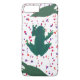 Confetti, sapos verdes e folhas, cor de fundo personalizada.