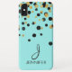 Folha de Ouro Teal Azul e Faux e Bolinhas Negra Cinzenta Brilhante Confetti Padrão Monograma Elegante. Este caso Turquoise- Aqua Blue pode ser personalizado para incluir o nome inicial e o nome do cheio. Entre em contato com o designer para obter itens correspondentes.