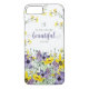 Capa de telefone celular com lindas imagens florais roxas e amarelas de aquarelas ao redor do verso das escrituras de Eclesiastes 3:11, "Ele fez tudo bonito em seu tempo." Projetado por Simplesmente Escritura; elementos do JPEG faminto.