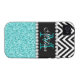 CAPA PARA iPhone, Case-Mate VIGA DO PRETO DO BRILHO DO AQUA MONOGRAMMED